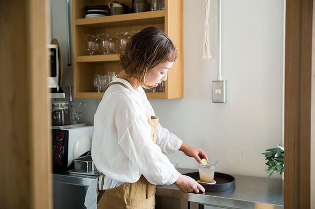 イベント時以外はアトリエで仕込みをしています。プロダクツのお買い物やドリンクのテイクアウトはお気軽にいらしてください。